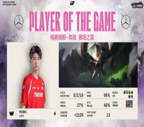 首局比赛Shaoye塞纳第一波下路防GANK直接拿下三杀,但是三路线优的WE还是拿到了经济优势!不过后期阵容的LGD先拿了两条小龙可以把局势往后拖!中期LGD一波1换4将局势打回,正当情况向着LGD翻盘之势开始演变的时候,LGD在河道团优势局面下sasi安蓓萨+xqw沙皇两人空大,还双双吃了岩雀撒石阵直接没了!Taeyoon维鲁斯三杀收尾,WE团灭LGD之后先后拿下双大龙+风龙魂!也没给WE机会,野区一波交大追击打出1换4之后结束首局的比赛!