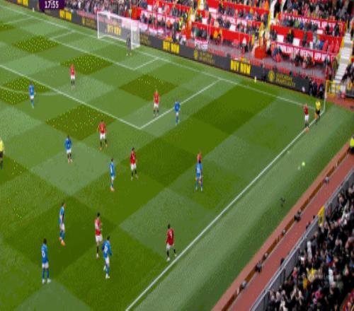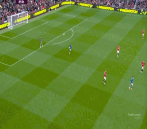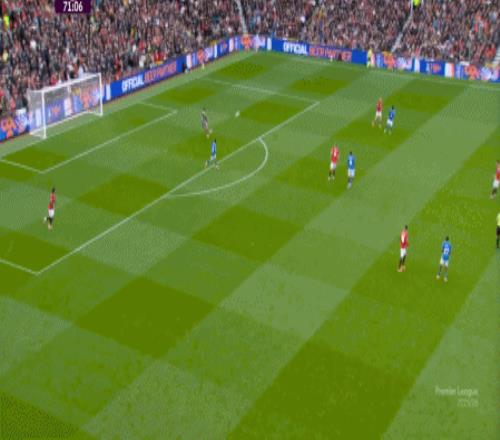 于是在第8分钟,曼联就再次利用到了343打四后卫球队的体系优势,阿玛德-迪亚洛进入空位得球: