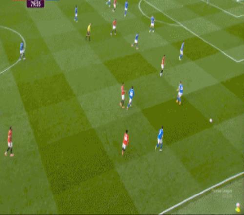桑德兰通过两翼打到前场,曼联就开始出现防守问题,锋线无力,但能牵制住曼联的阵线,于是扎卡就因此获得了外围远射的机会: