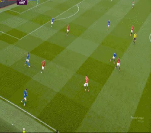 在这次5防3成功之后,曼联立刻就打出了反击,利用的其实就是阿玛德-迪亚洛这一点,只要摆脱掉对方防守意识可能不够的边锋球员,就会立刻进入到谁都管不到的空位里: