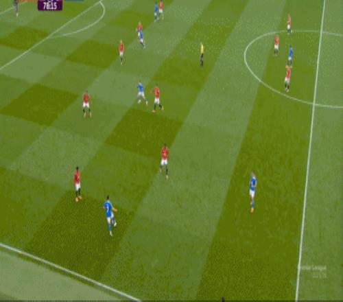 在过程中可以看到,对手打出威胁的关键点是又突破了卢克-肖的防守,锅是他的跑不掉,但在这之前,卢克-肖已经在防范对手在中路的接球了: