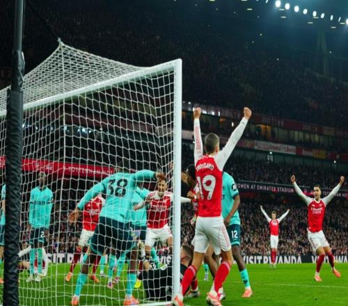 21!阿森纳5分领跑+送垫底队10连败萨卡两造乌龙球+补时造绝杀